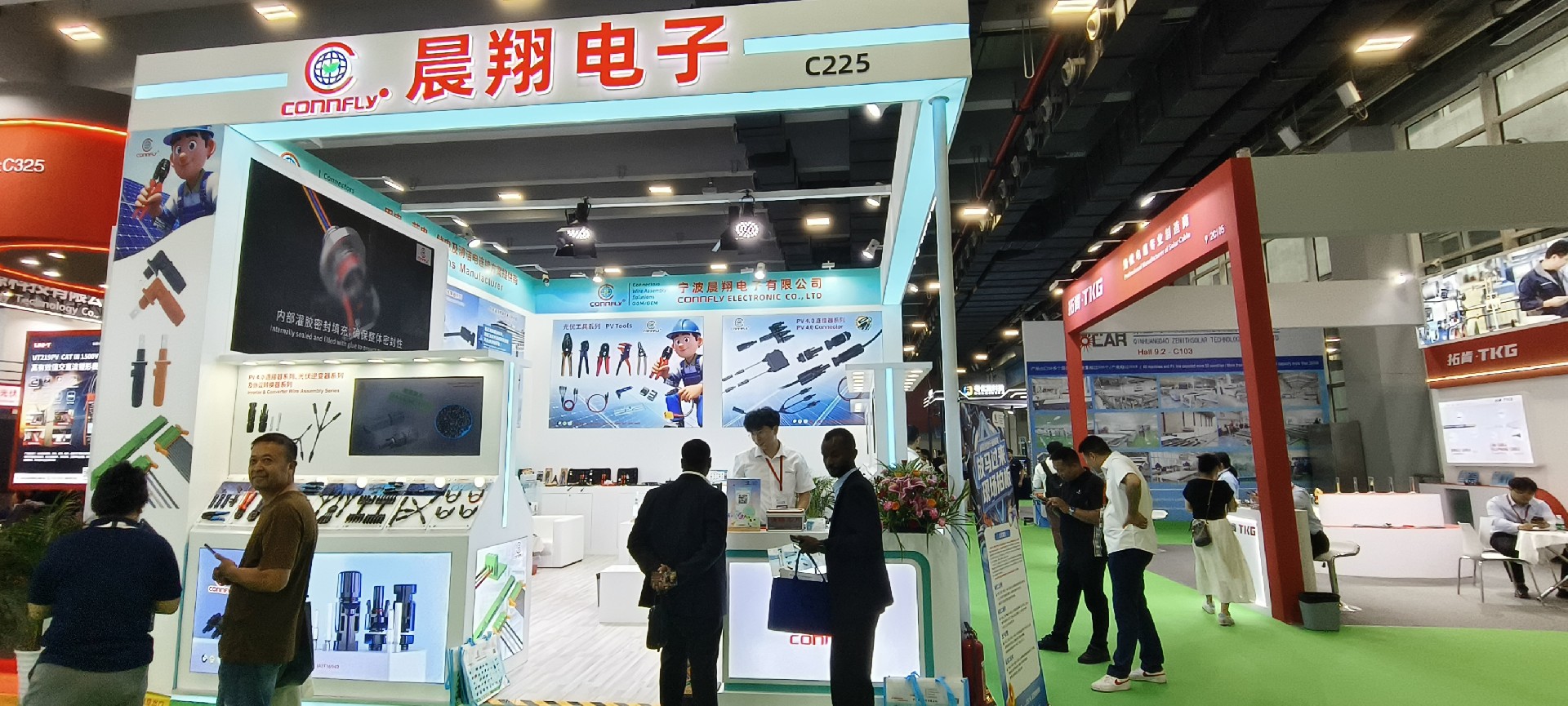 展會期間,晨翔電子展示了新一代高效光伏組件、智能逆變器及模塊化儲能系統,吸引了大量專業觀眾駐足交流。其中,光儲一體化解決方案憑借高穩定性與智能化管理優勢,成為現場焦點,多家企業表達了深度合作意向。